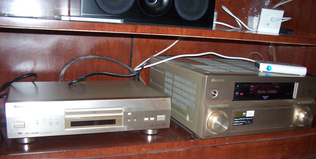 原来是先锋的969和AX4,看到吗?1394的声音传输灯已经点亮了。