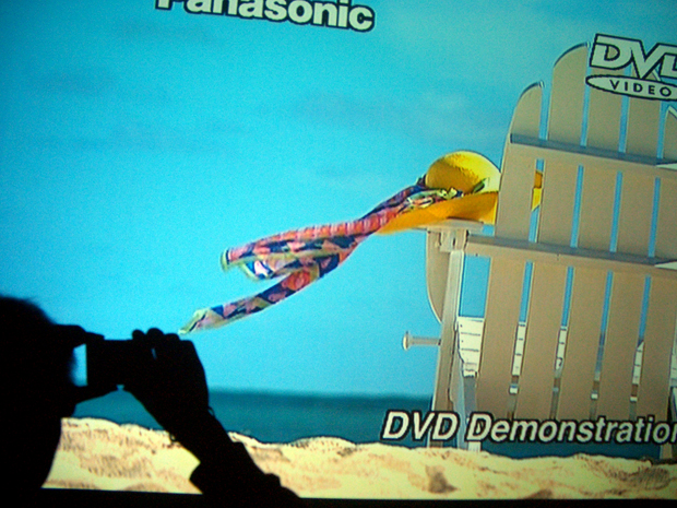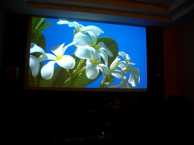 以上的图象绝对是杨生现场拍摄的。当然使用了HDMI的传输方式,图象的锐利和色彩的丰富程度都是大家机器出色的,而你很难想象这竟然是由一台14000元的初级投影机。你什么可不相信的,上面的图象就是很好的证明。